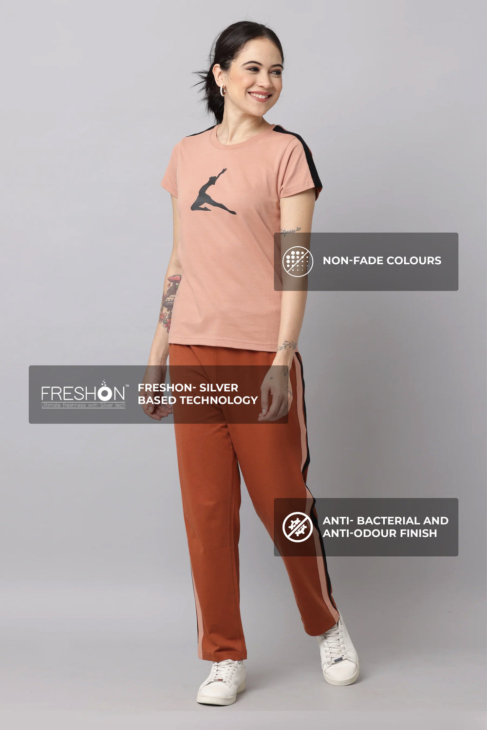 For a day out, pair your co-ord set with a sleek jacket or hoodie. Sneakers and a stylish bag can complete the look, giving you a chic athleisure vibe that works for everything from brunch to casual outings.