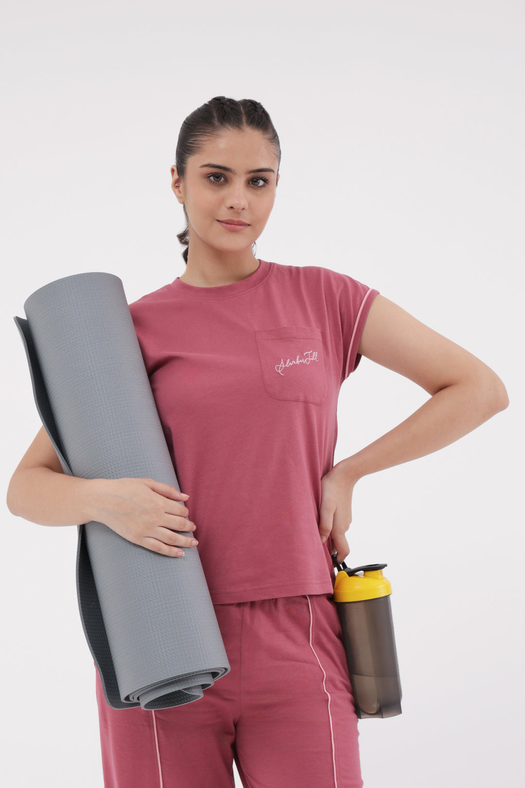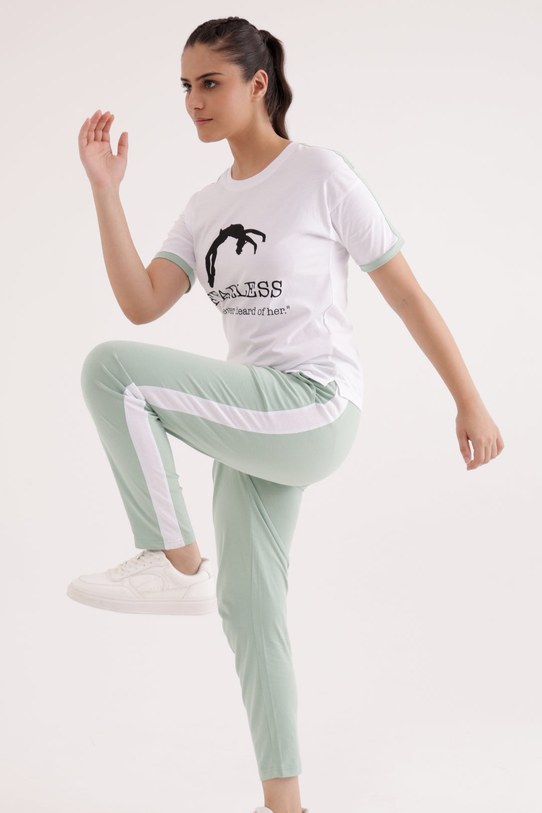 If you’re heading to the gym, keep things simple by pairing your co-ord set with supportive sneakers and minimal accessories. A sports watch and water bottle can complement your sporty look.