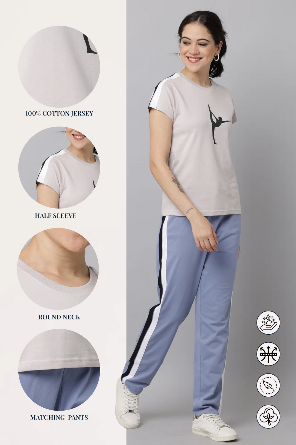 - Supportive Fit Look for sets with a supportive fit, especially around the waistband and bust. High-waisted leggings or sports bras with built-in support can make a huge difference in comfort during intense workouts.