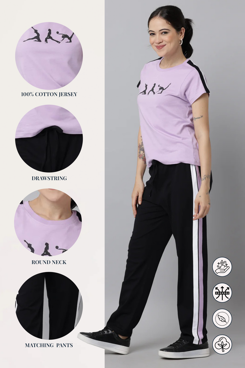 For a day out, pair your co-ord set with a sleek jacket or hoodie. Sneakers and a stylish bag can complete the look, giving you a chic athleisure vibe that works for everything from brunch to casual outings.